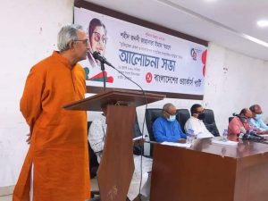 আলোচনা সভায় মূলপত্র উত্থাপন করেন বাংলাদেশের ওয়ার্কার্স পার্টির সাধারণ সম্পাদক কমরেড ফজলে হোসেন বাদশা এমপি।
