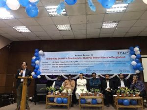 মূল বক্তব্যে স্টামফোর্ড বায়ুমন্ডলীয় দূষণ অধ্যয়ন কেন্দ্র (ক্যাপস)-এর প্রতিষ্ঠাতা চেয়ারম্যান অধ্যাপক ড. আহমদ কামরুজ্জমান মজুমদার বলেন, বায়ুদূষণের স্বাস্থ্য ঝুঁকি অনুধাবন করে বিশ্ব স্বাস্থ্য সংস্থা (WHO) যেখানে বস্তুকণা ২.৫ এর মানমাত্রা প্রতি ঘনমিটারে ১০ মাইক্রোগ্রাম থেকে কমিয়ে ৫ মাইক্রোগ্রাম করেছে, সেখানে সাম্প্রতিক পাশ হওয়া বায়ু দূষণ (নিয়ন্ত্রণ) বিধিমালা, ২০২২ এর ১নং তফসিলে বায়ুর মানমাত্রা প্রতি ঘনমিটারে ১৫ মাইক্রোগ্রাম থেকে বাড়িয়ে ৩৫ মাইক্রোগ্রাম করা হয়েছে। অপরদিকে একই বিধিমালার তফসিল ৫ এ তাপ বিদ্যুৎ কেন্দ্রের স্ট্যাক নিসঃসরণের সর্বোচ্চ সীমা সালফার ডাই-অক্সাইড, নাইট্রোজেন এর অক্সাইড সমূহ এবং বস্তুকণার মানমাত্রা যথাক্রমে ঘনমিটারে ২০০, ২০০ এবং ৫০ মিলিগ্রাম করা হয়েছে, যা উন্নতদেশের মানমাত্রার চেয়ে নূন্যতম ৪-৫ গুণ বেশি। অর্থাৎ উন্নত দেশগুলো তাদের দেশে উন্নয়ন কর্মকান্ড করার সময় নি:স্বরণ মাত্রার যে মানদন্ড মেনে চলে, সেই মানমাত্রা দেশগুলো উন্নয়ন সহযোগি হিসেবে আমাদের দেশে কাজ করার সময় মানে না।