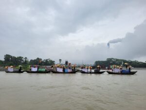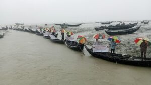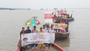 বিশেষ প্রতিনিধি | পটুয়াখালী, ১৩ সেপ্টেম্বর ২০২৪ : জলবায়ু ন্যায়বিচারের জন্য সমগ্র এশিয়া মহাদেশে “এশিয়া ডে অফ অ্যাকশন টু এন্ড কোল” কর্মসূচীর অংশ হিসাবে শনিবার (১৩ সেপ্টেম্বর ২০২৪) অন্য ৯টি দেশের সাথে বাংলাদেশের উপকুলে অবস্থিত কয়লাভিত্তিক বিদ্যুৎ কেন্দ্র সন্নিহিত এলাকাসমূহে প্রতিবাদী কর্মসূচি পালিত হয়েছে। এই কর্মসূচির মাধ্যমে কয়লার ব্যবহার বন্ধ করা, বাংলাদেশে কয়লাদূষণ থেকে নদী ও জলাশয় রক্ষার সাথে সাথে শতভাগ নবায়নযোগ্য জ্বালানিতে রূপান্তরের দাবি জানানো হয়। কর্মসূচিসমূহের মধ্যে ছিল কোহেলিয়া, পায়রা, পশুর এবং রাবনাবাদ নদীতে নৌ র্যালি এবং মাতারবাড়ি কয়লা বিদ্যুৎ প্রকল্প, তালতলিতে অবস্থিত বরিশাল পাওয়া প্ল্যান্ট, রামপাল কয়লা বিদ্যুৎ কেন্দ্র বন্ধের দাবিতে মোংলায় এবং পটুয়াখালী কয়লা বিদ্যুৎ প্রকল্পের সামনে মানববন্ধন।