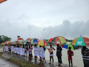 শুক্রবার নিম্নচাপের প্রভাবে সংঘটিত ঝড়-বৃষ্টিকে উপেক্ষা করে এই প্রতিবাদী কর্মসূচিতে শত শত ক্ষতিগ্রস্ত মানুষ অংশগ্রহণ করেন।