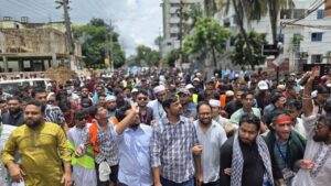 এর আগে শহরের শহীদ মিনার থেকে দেশ গড়তে জুলাই পদযাত্রা বের হয়। শহরের কোর্ট রোড ও শাহ মোস্তফা সড়কে পথযাত্রা হয়। এতে যোগ দেন সর্বস্তরের কয়েক হাজার মানুষ।