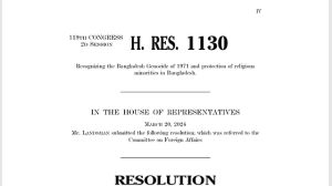 বিশেষ প্রতিনিধি | ওয়াশিংটন (যুক্তরাষ্ট্র), ২২ মার্চ ২০২৬ : ১৯৭১ সালে বাংলাদেশে সংঘটিত গণহত্যার স্বীকৃতির দাবিতে মার্কিন প্রতিনিধি সভায় একটি প্রস্তাব উত্থাপন করা হয়েছে। এতে ব্যাপক হত্যাকাণ্ড, ধর্ষণ ও বাস্তুচ্যুতির মতো নৃশংসতার কথা উল্লেখ করে অপরাধীদের জবাবদিহির আওতায় আনা এবং ধর্মীয় সংখ্যালঘুদের সুরক্ষার আহ্বান জানানো হয়েছে।